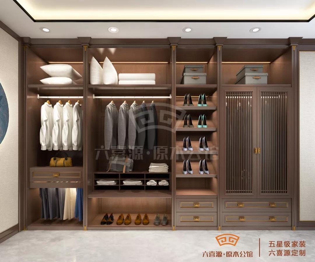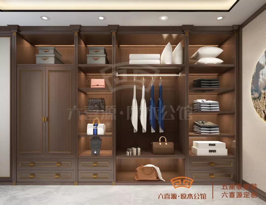 衣帽間屬于“門”型結構,左側的衣柜“一開一合”,簡約大氣;右側“一開半合”,內斂有序。