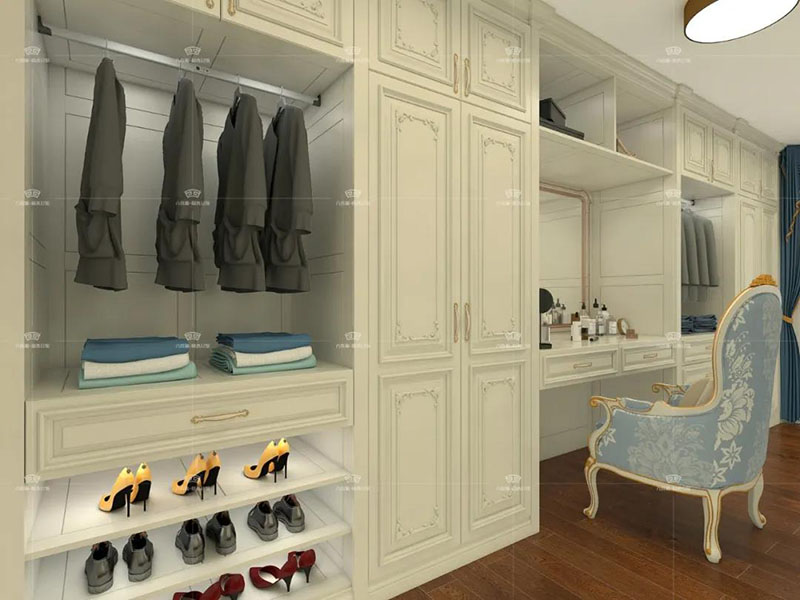 入戶采用的是子母門的設計,配合寬闊的走廊,旁邊是橫排的入戶柜,配合經典的雕花裝飾,所有的搭配均體現了主人豪邁優雅的氣質。