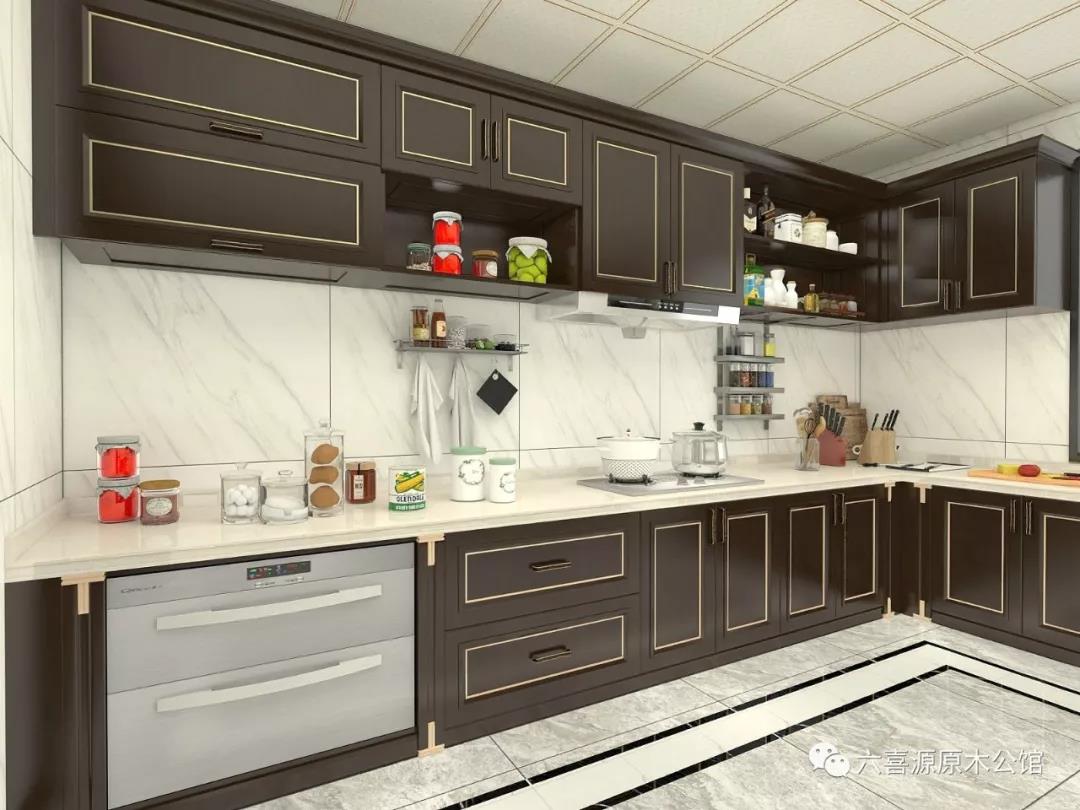 廚房采用中式的方形設計,更講究中式的有秩序、橫豎分明,這樣的廚房不僅方便實用,而且美觀大方。