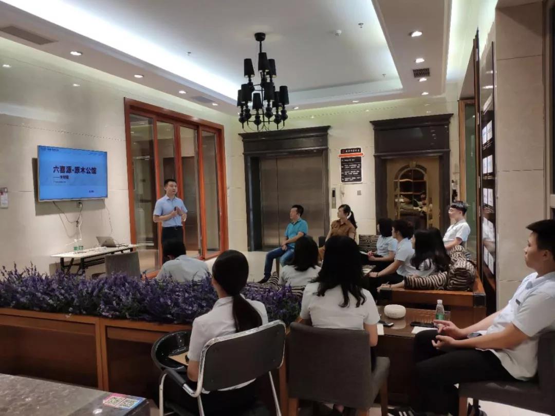 六喜源營(yíng)銷中心培訓(xùn)部陳劍心老師正在講解六喜源整裝營(yíng)銷、整裝報(bào)價(jià)方面的知識(shí),針對(duì)店面如何提高原木整裝單值、服務(wù)好客戶等方面進(jìn)行了分享。